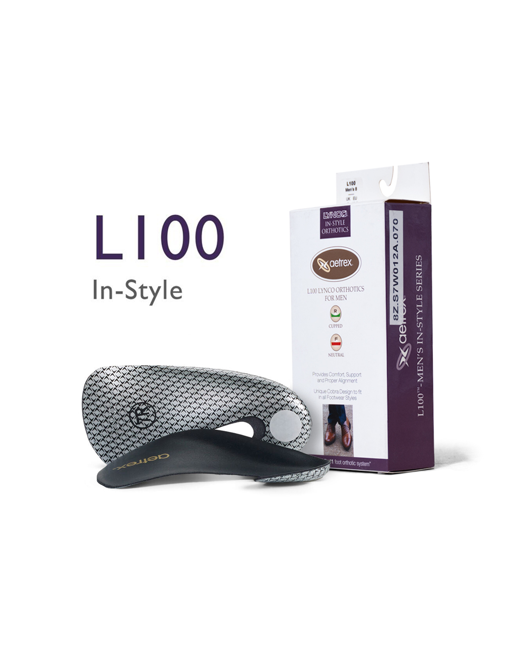 Multiple models (L100–L620) designed for different arch heights and footwear types